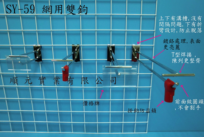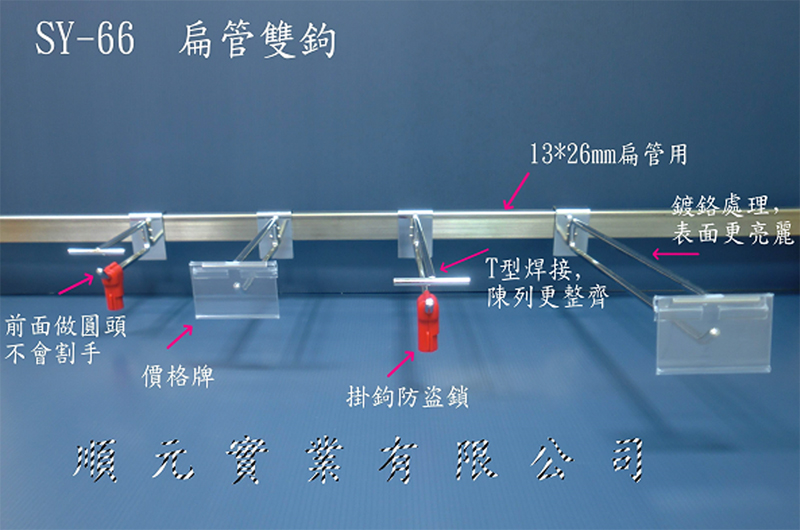 順元實業專注於提供高品質的店鋪陳列解決方案。我們的產品線涵蓋結構穩固的掛鉤與鐵勾、實用的PP掛條及展示夾。 此外,我們亦供應各類展示架與壓克力架,適用於超市、賣場及各類商品陳列需求。 另提供防盜鎖、束帶等配件,全面提升商品展示與安全管理效率。多元規格、支持客製,品質可靠!