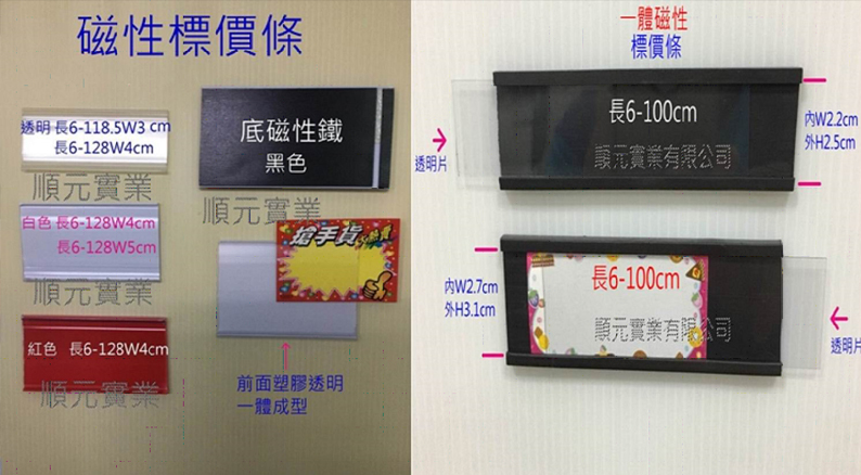 除了桌面展示,貨架邊緣的標價條也是關鍵。我們提供透明、磁性及玻璃層板專用的標價條,能與壓克力製品完美結合,讓整體賣場視覺整齊劃一,提升商品質感。