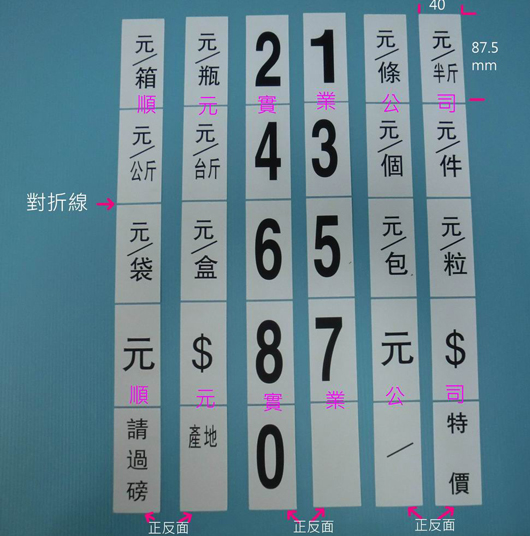 附單位4條, 數字8條,適合超市生鮮標價使用