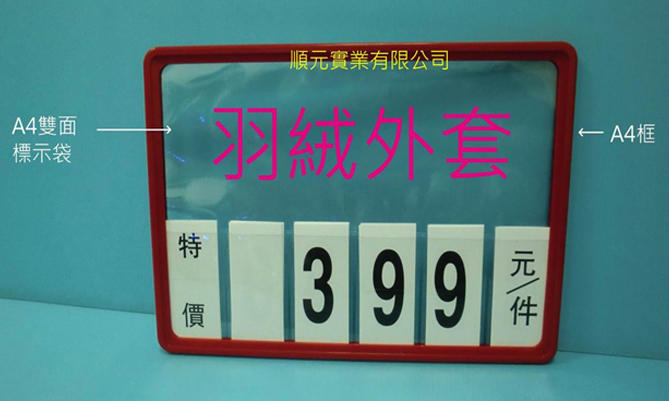 A3框+護套+A3單位框+單位、數字 附單位4條、數字8條,適用於水果標價大面積展示