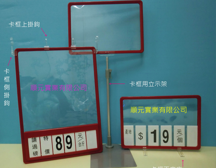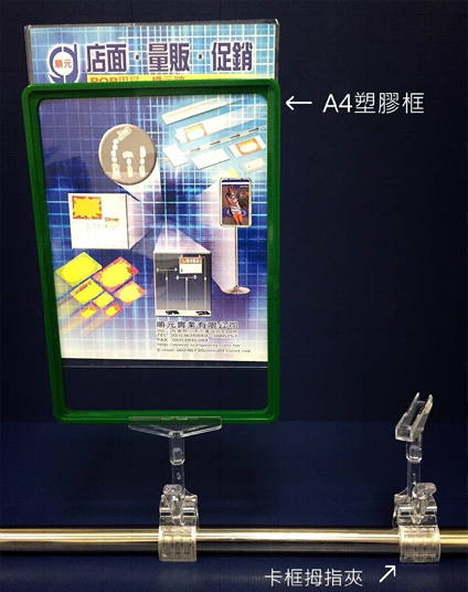 卡框拇指夾+A5框黑色 卡框拇指夾+A4框,方便夾於水果籃邊緣